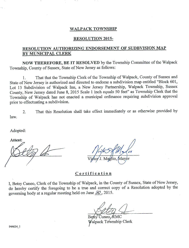 TOWNSHIP OF WALPACK RESOLUTION