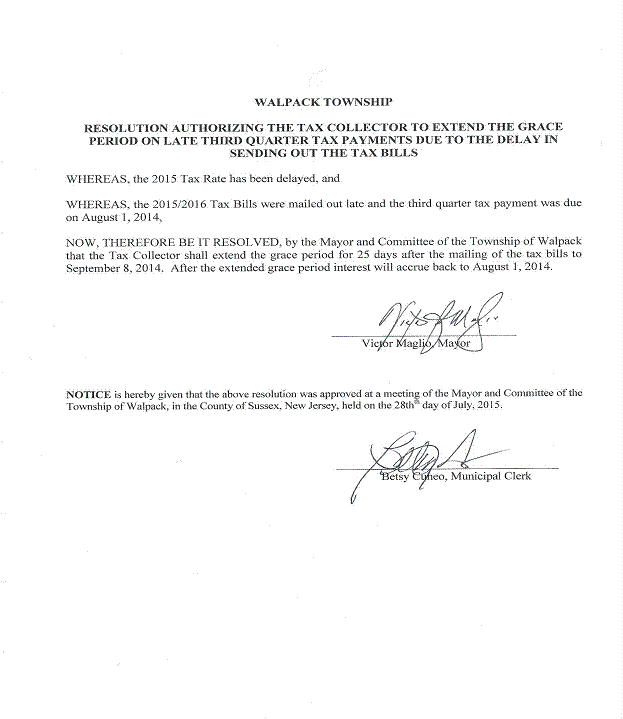 Walpack at a regular meeting of said Governing Body held on July 28, 2015.