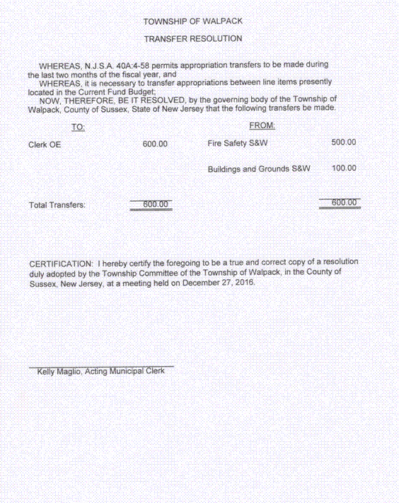 Present: Committeewoman Wycalek, Committeeman Heigis, and Mayor Maglio